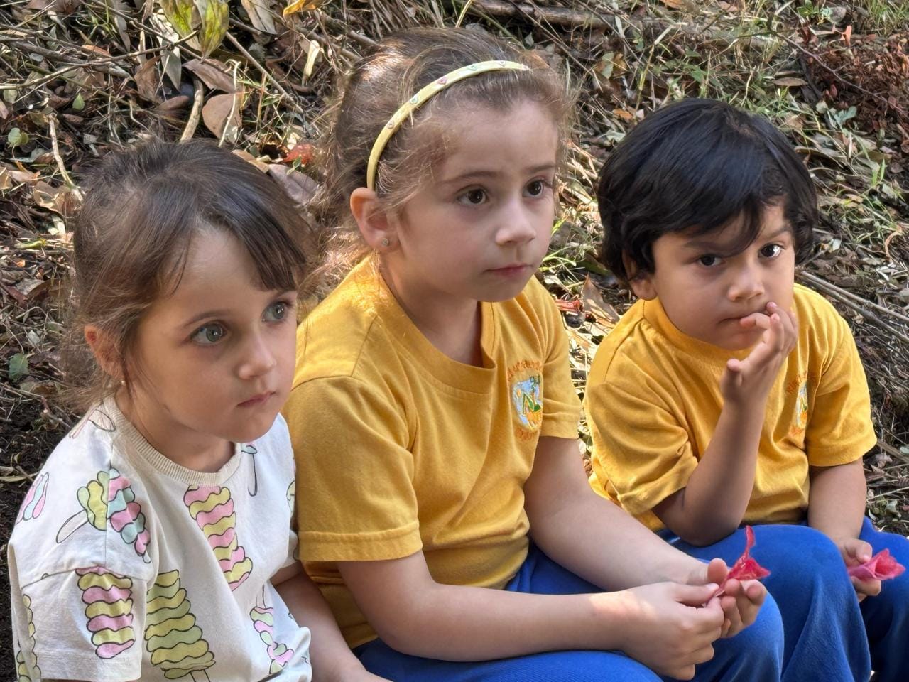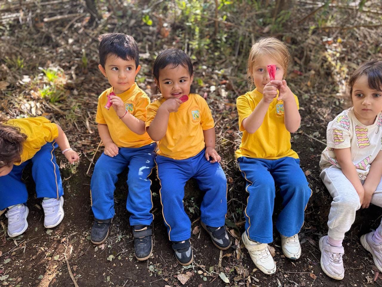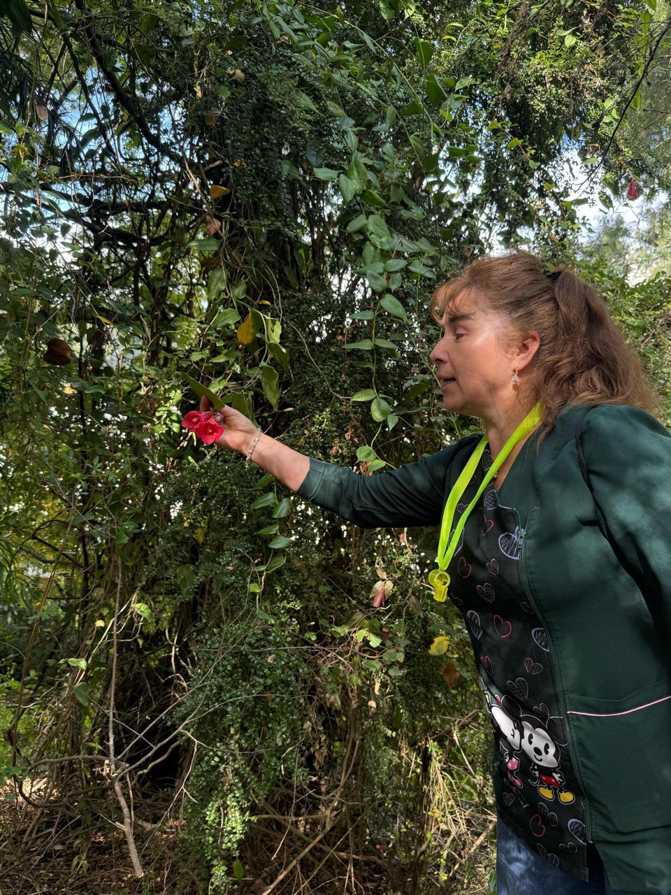 Explorando nuestro alrededor nos encontramos con los maravillosos Copihues que aunque estando  ya en el suelo marchitas podemos saber como es su textura, color y delicadeza, una experiencia única de poder conocer de cerca nuestra flor nacional de Chile.